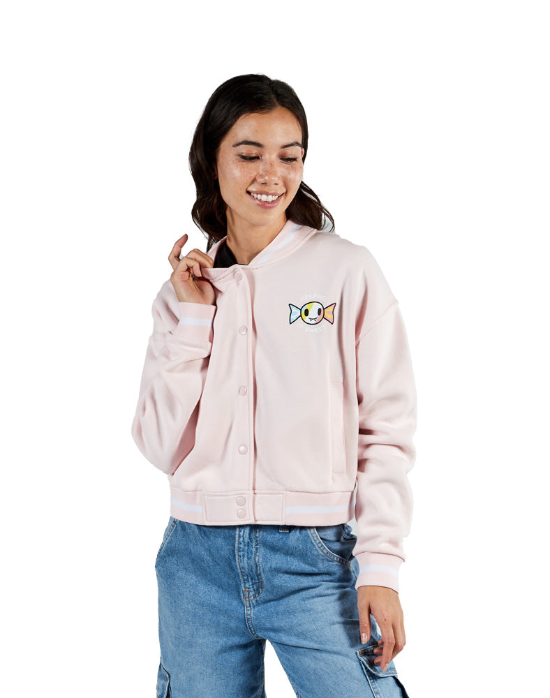 – Women’s fleece varsity jacket in pink