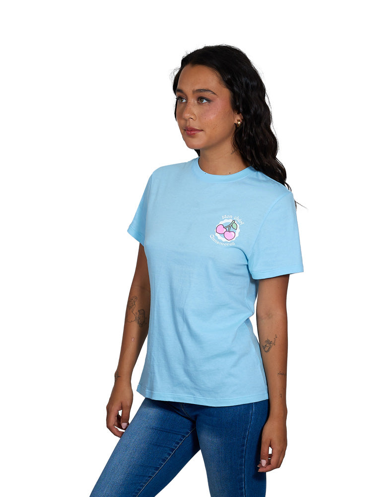 – Women’s screen print tee in light blue